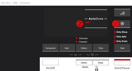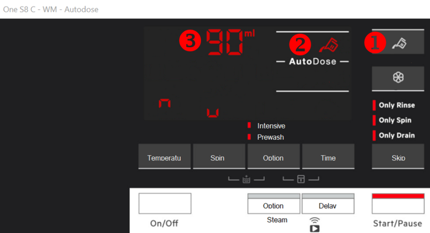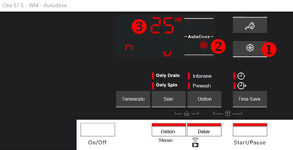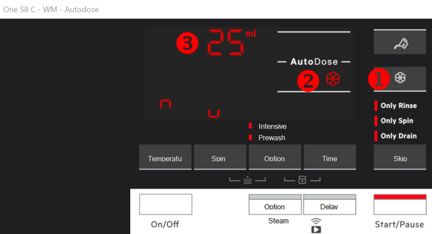 7. Si aucune autre action n'est effectuée, après 10 secondes, l'affichage revient au programme et le réservoir de détergent AutoDose est activé.