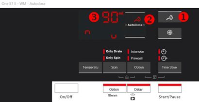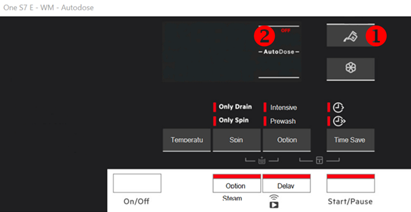 En fonction de la disposition du panneau de commande de votre lave-linge AEG, suivez les instructions suivantes pour la configuration de la dose automatique: