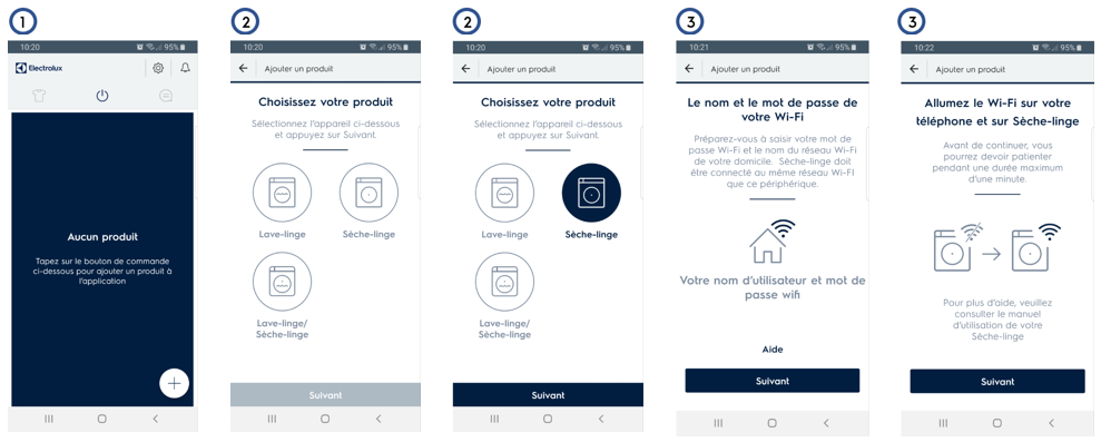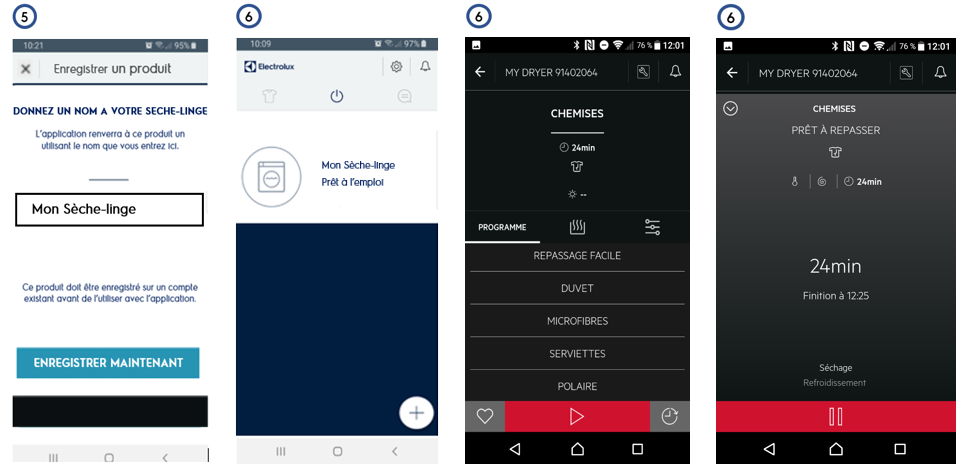 Lorsque le compte est créé et activé sur votre appareil mobile, vous allez pouvoir maintenant connecter votre sèche-linge à l'application My Electrolux Care :