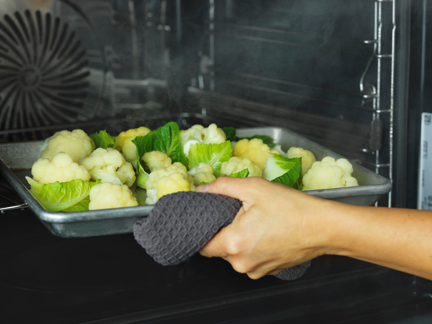 - Réglez votre four en Vapeur Intense à 100 °C pendant environ 3-5 min selon la taille de votre chou-fleur. Votre légume doit être bien doré.