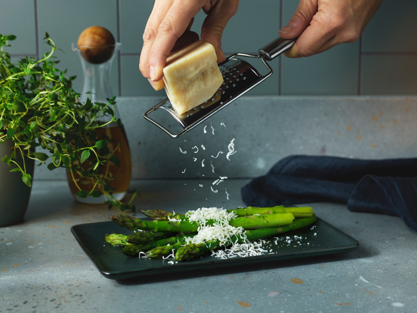 Asperges vertes au parmesan râpé et à l'huile d'olive