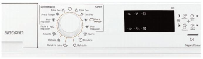 Nous avons répertorié ci-dessous les bandeaux de commande de nos sèche-linge.