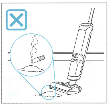 - n'aspirez pas de cendres de cigarette chaudes ou toute autre cendre, |