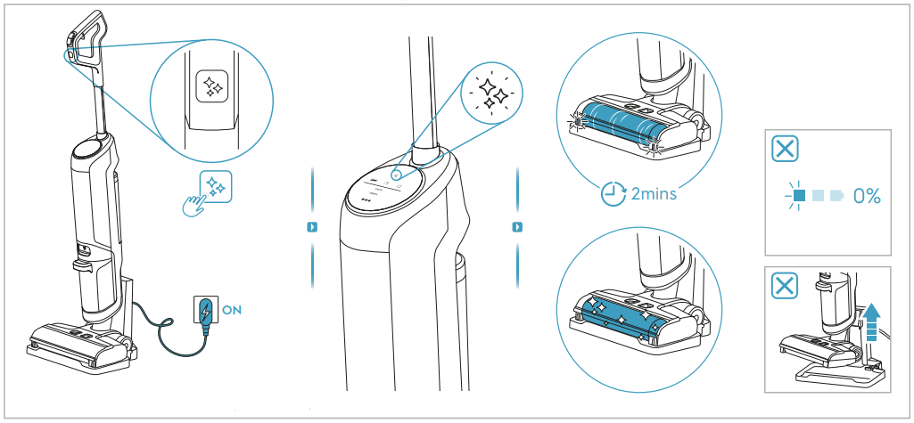 1. Positionnez l'aspirateur balai sur sa station de charge.