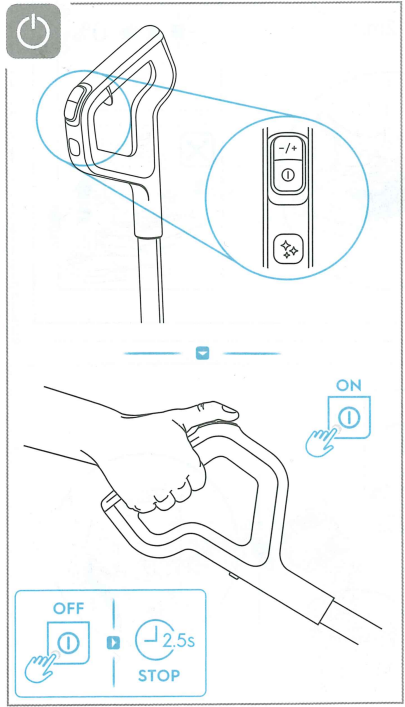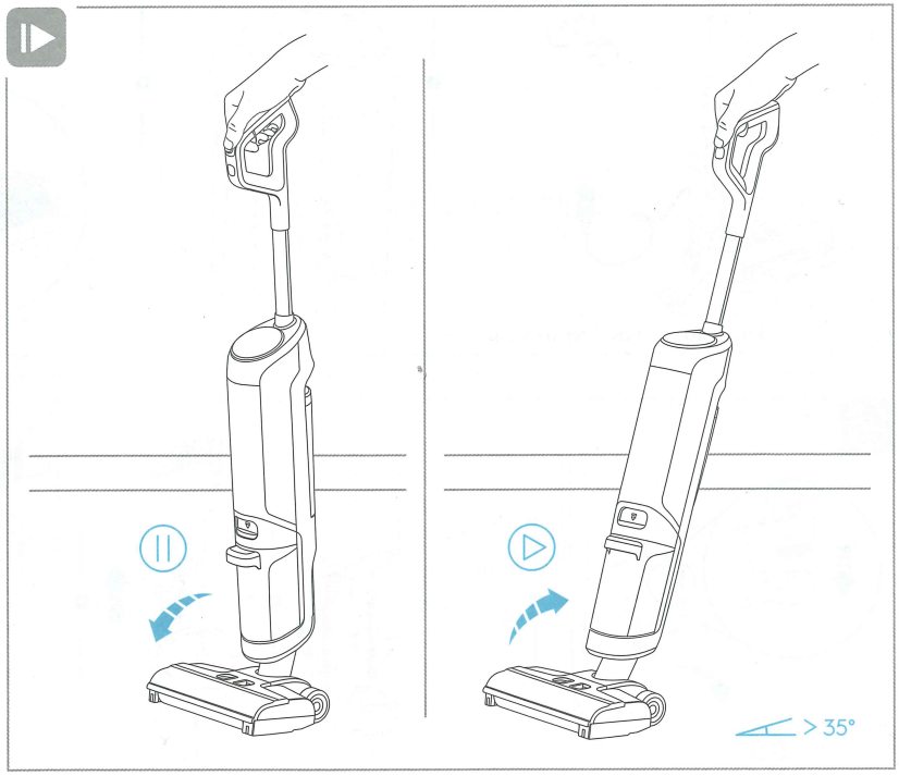 Pendant le fonctionnement, en plaçant l'aspirateur balai en position verticale, l'appareil se met en pause sans aucune action sur les touches.
