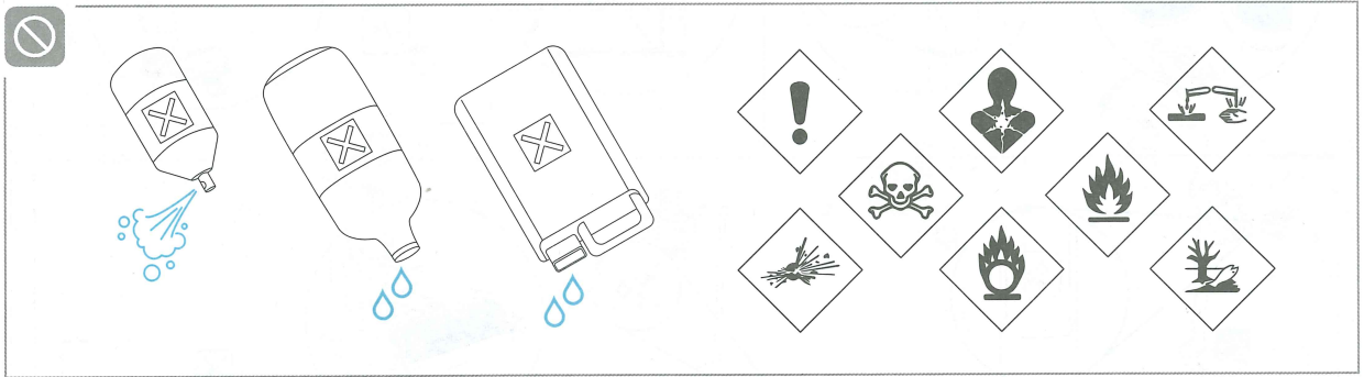 - vérifiez qu'aucun des symboles ci-dessous ne soit marqué sur l'emballage du détergent afin d'éviter une détérioration des éléments internes de l'appareil.