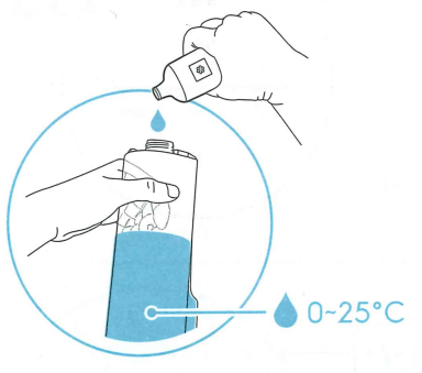 4. Remplissez le réservoir d'eau claire dont la température doit être comprise entre 0 et 25°C (capacité maximale du réservoir : 600 ml).