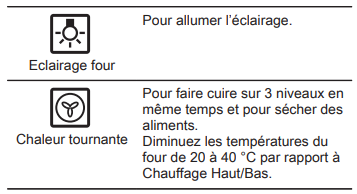 - Le four reste sombre lorsqu'il est en marche.