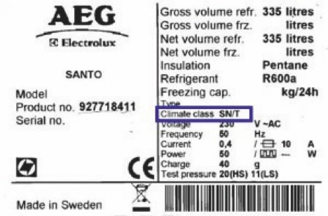 Emplacement des informations sur la classe climatique sur la plaque signalétique :