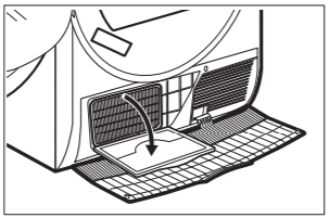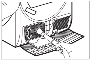 Si nécessaire, retirez les peluches sur le condenseur et dans son compartiment. Vous pouvez utiliser un chiffon humide et/ou un aspirateur avec brosse.