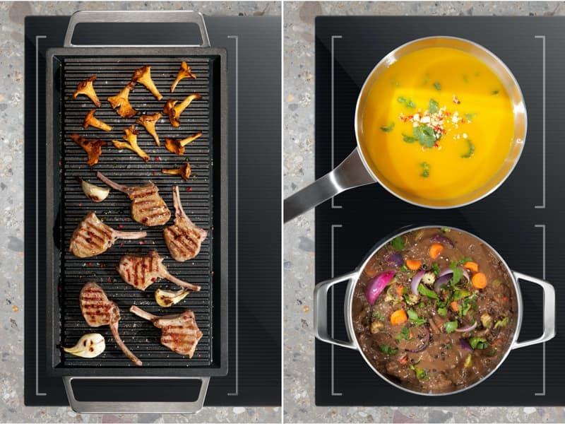 Réactif au toucher, TotalFlex offre une flexibilité maximale, un contrôle total et une expérience de cuisson fluide sur votre table de cuisson à induction sans zone. Une fois activée, vous pouvez cuisiner n'importe où sur la surface, et la taille de vos récipients sera détectée pour une meilleure puissance d'induction. Quelle que soit la taille de votre récipient - du grand plat à paella au long plat à poisson - il y a une place confortable pour lui sur la table de cuisson.